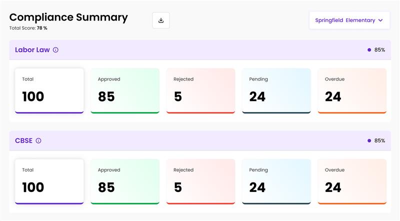A centralized compliance platform for managing statutory, academic, HR, operational, and financial requirements of schools.